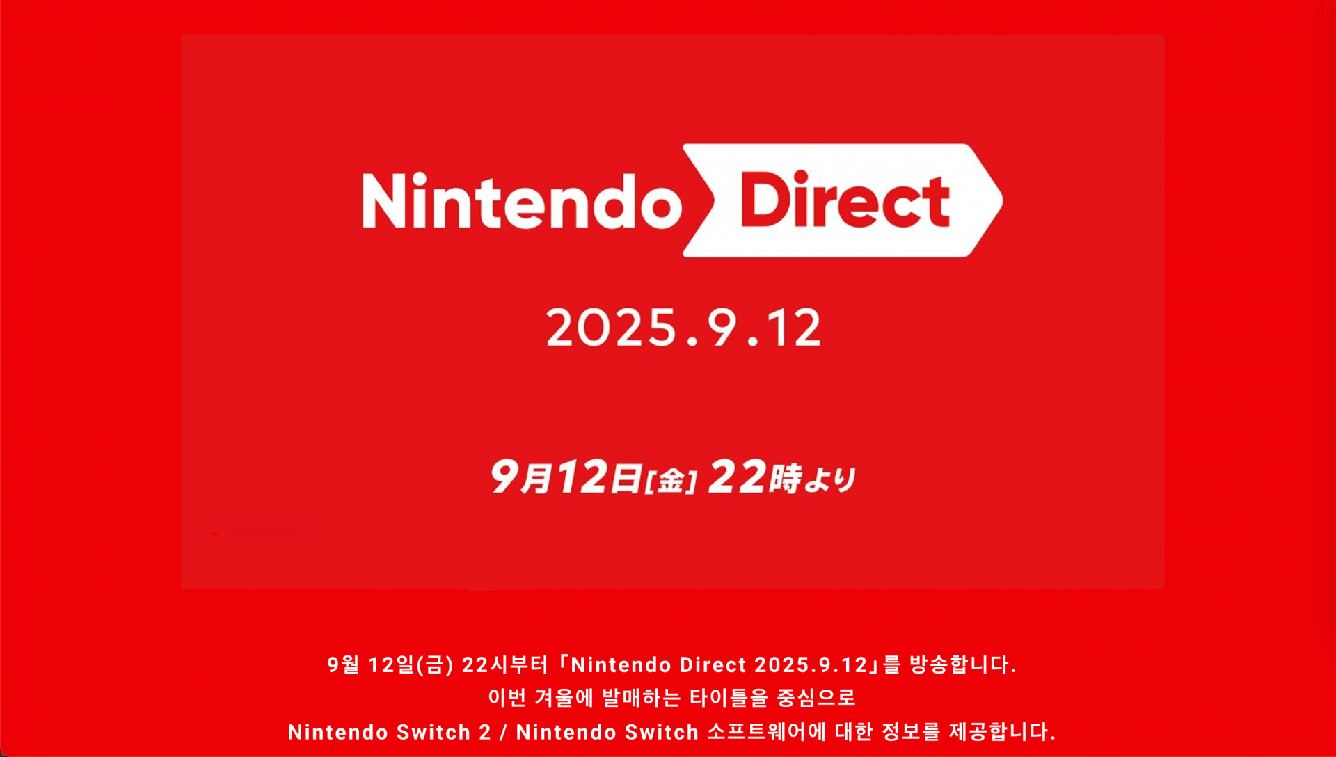 구체적인 라인업은 아직 공개되지 않았으나, 9월 12일 오후 10시 닌텐도 공식 유튜브 채널을 통해 확인할 수 있습니다.